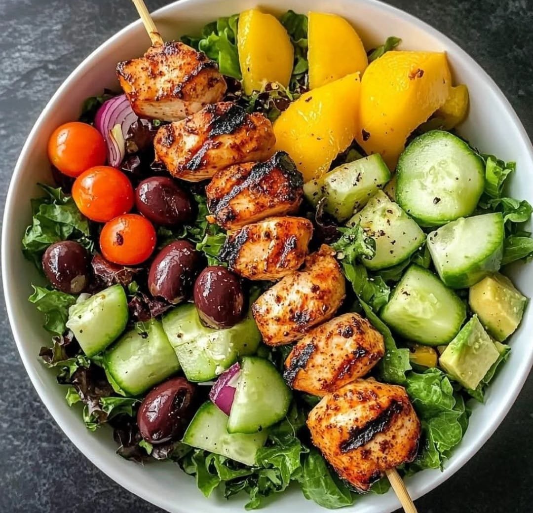 This Grilled Chicken Skewer Salad is a perfect balance of flavors, textures, and nutrition—ideal for a quick and healthy meal. Enjoy!