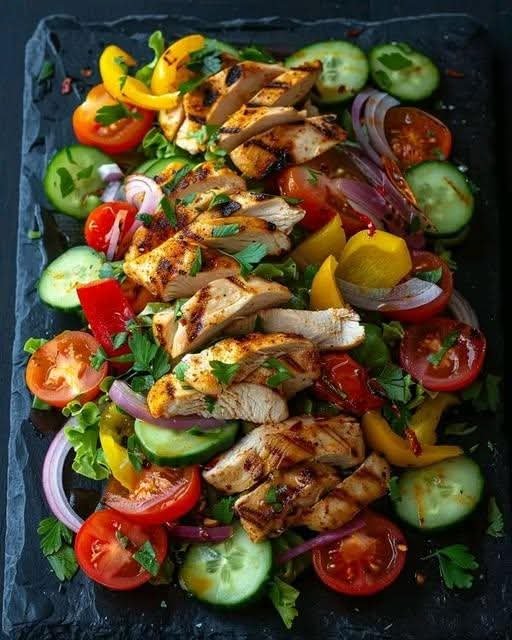 Grilled Chicken Vegetable Salad is a light yet satisfying dish perfect for lunch or dinner. Juicy, marinated grilled chicken is paired with a vibrant mix of fresh vegetables like bell peppers, cucumbers, cherry tomatoes, and mixed greens. Finished with a tangy homemade vinaigrette, it delivers a refreshing balance of flavor, protein, fiber, and color—all in one bowl.