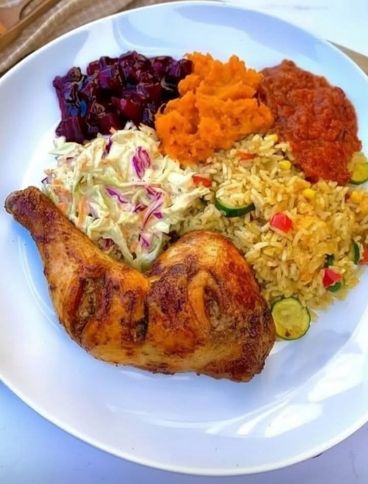 This vibrant, well-balanced dish features juicy grilled chicken paired with flavorful vegetable fried rice and roasted sweet potatoes. Perfect for a wholesome dinner, it’s packed with protein, fiber, and antioxidants. The chicken is seasoned with a simple herb-spice blend, the fried rice is lightly savory with fresh vegetables, and the sweet potatoes add a natural sweetness that complements the savory elements. A feast that’s as beautiful on the plate as it is satisfying to eat!