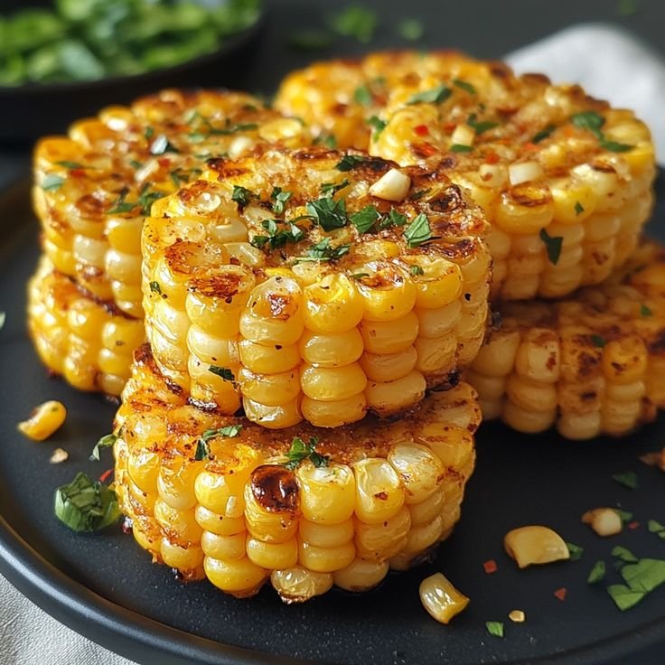 Fresh corn sliced into rings, grilled until lightly charred, then tossed in garlic-infused olive butter, fresh herbs, and a squeeze of lemon. Crispy edges, juicy centers, and incredible aroma — perfect for BBQs or as a stylish side dish.