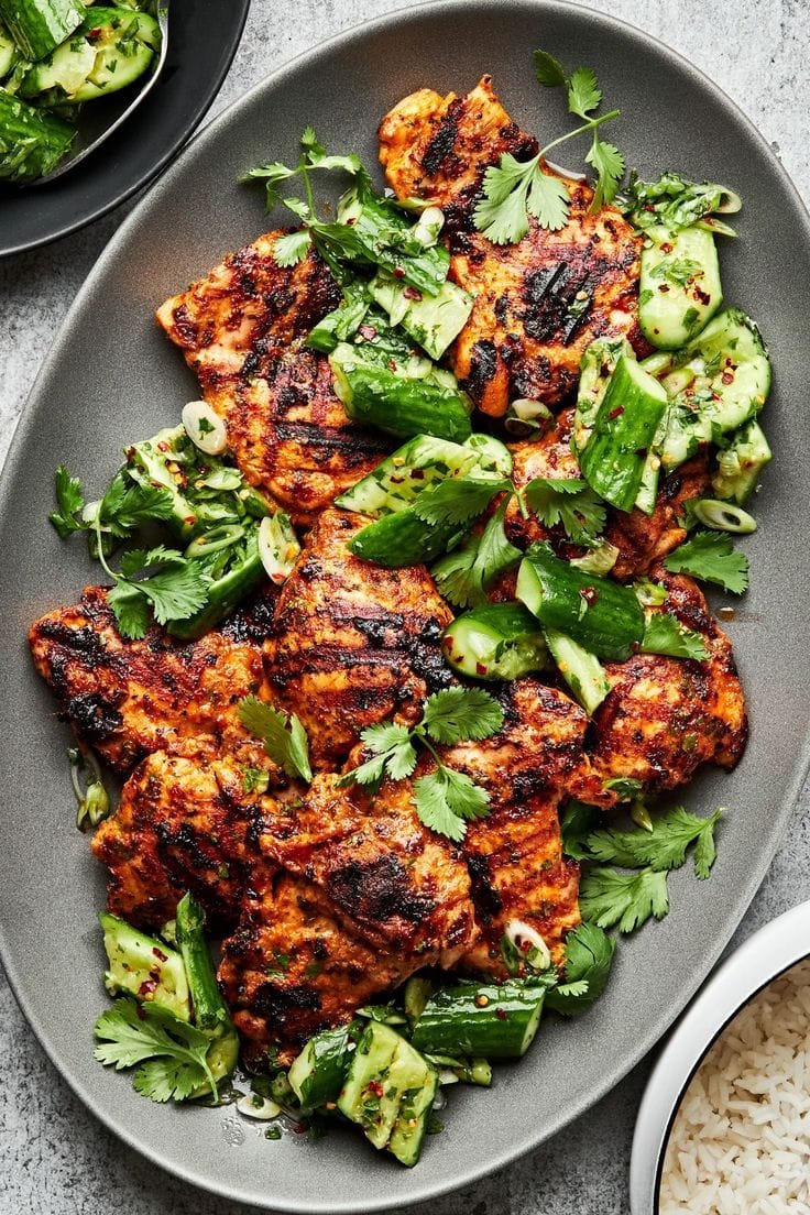 Grilled Curry Chicken with Smashed Cucumber Salad