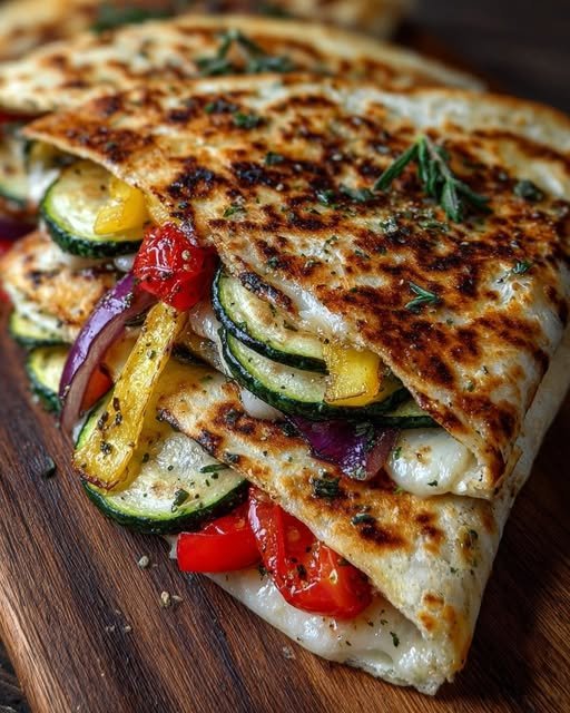 Grilled Mediterranean Veggie & Mozzarella Quesadillas are a fresh, colorful twist on a familiar comfort food. Instead of heavy fillings, these quesadillas focus on grilled vegetables, olive oil, herbs, and creamy melted cheese. The vegetables bring natural sweetness and light smokiness, while mozzarella keeps everything soft and stretchy without overpowering the flavors. They’re easy enough for a quick lunch but satisfying enough for dinner, especially when served with hummus or tzatziki on the side. This recipe fits beautifully into Mediterranean-style eating while still feeling fun, casual, and comforting.