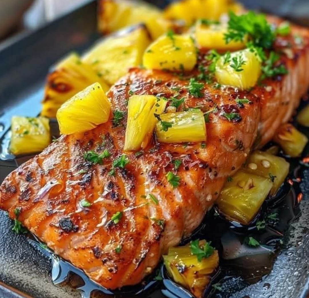 This Grilled Pineapple Teriyaki Salmon is a perfect blend of sweet, savory, and smoky. Fresh salmon fillets are marinated in a sticky homemade teriyaki glaze and grilled to juicy perfection alongside caramelized pineapple slices. The tropical flavor combination is irresistible, and the dish pairs beautifully with rice, quinoa, or a fresh green salad.