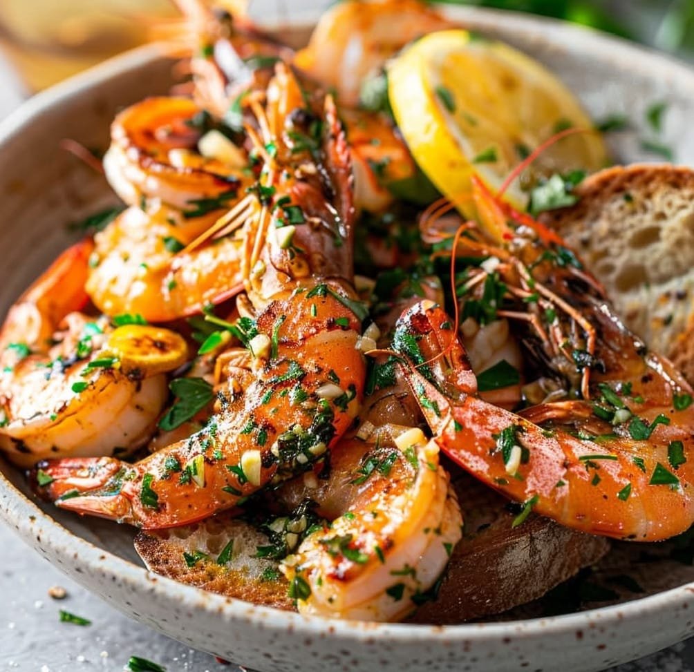 These Grilled Prawns with Garlic, Lemon, and Chili are a simple yet flavorful dish, perfect for summer grilling or a light and tasty appetizer. Juicy prawns are marinated in a zesty blend of garlic, lemon juice, chili, and olive oil, then quickly grilled to perfection. Serve them with a fresh salad, grilled veggies, or crusty bread to soak up the delicious juices.