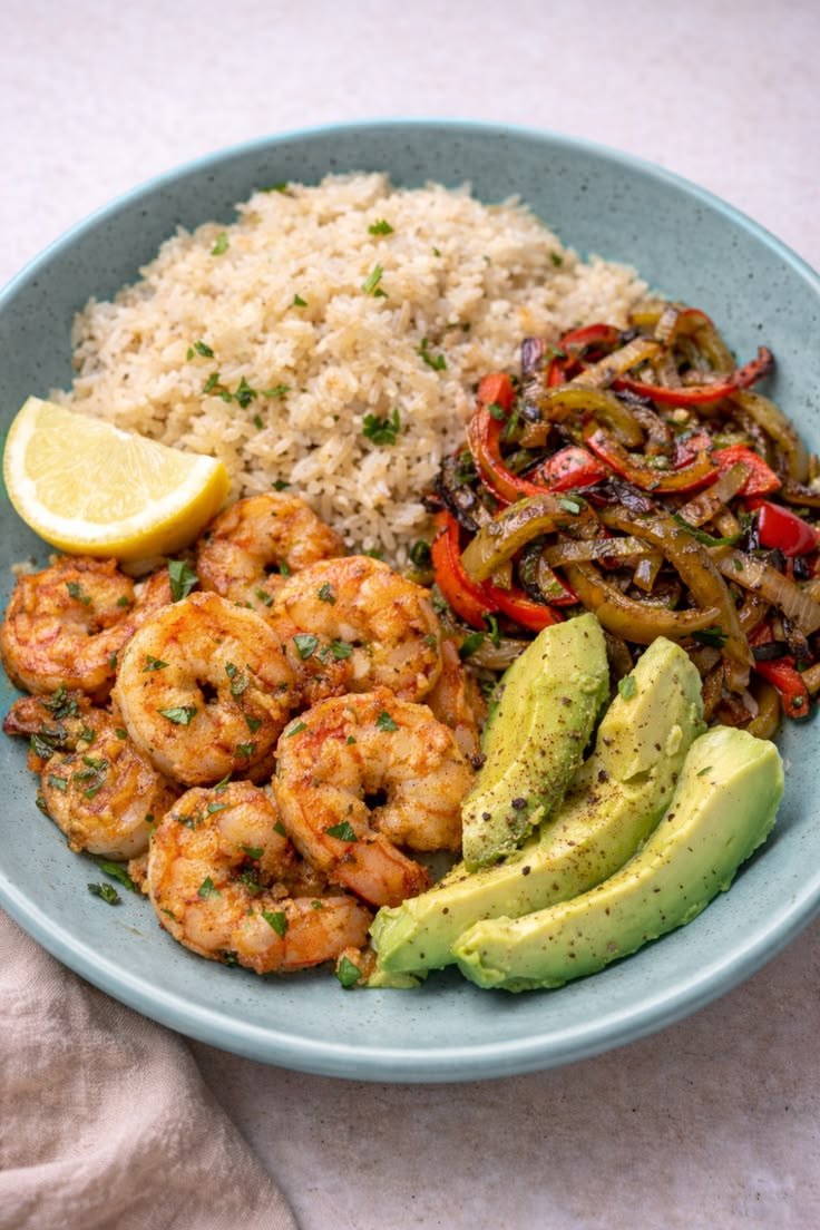 This Grilled Shrimp with Rice & Sautéed Veggies is a simple, balanced, and high-protein meal. Juicy Shrimp is lightly seasoned and grilled, then served with fluffy Rice and colorful sautéed vegetables.