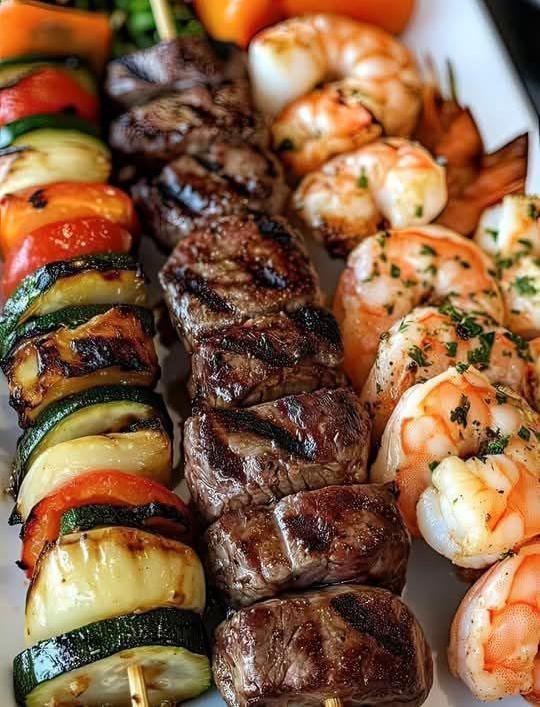Fire up the grill and bring vibrant flavor to your table with these Grilled Skewers featuring a mouthwatering trio of vegetables, tender beef, and juicy shrimp. Perfect for summer BBQs, family dinners, or weekend cookouts, these skewers are a colorful and crowd-pleasing option that offer something for everyone. With bold marinades and a quick grill time, this recipe delivers maximum flavor with minimal fuss. Whether you’re hosting or just treating yourself, these skewers are guaranteed to impress—served hot off the grill with your favorite sides or sauces.