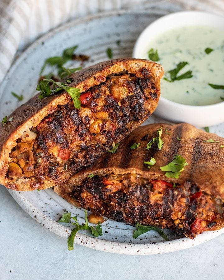 Juicy, smoky grilled vegetables are tucked into warm pita bread and slathered with creamy whipped feta. Drizzled with olive oil and balsamic glaze, it’s a handheld flavor bomb with the best of the Mediterranean.