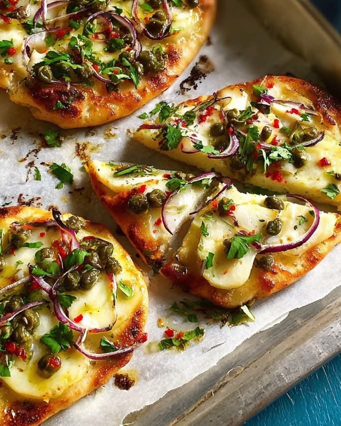 These mini Halloumi pizzettes are a bold and savory twist on traditional pizza, featuring crispy pan-seared halloumi slices as the “crust,” topped with a vibrant mix of tangy capers, zesty chili, juicy cherry tomatoes, and fresh herbs. They’re quick, satisfying, and perfect for a Mediterranean-style appetizer, snack, or light lunch.