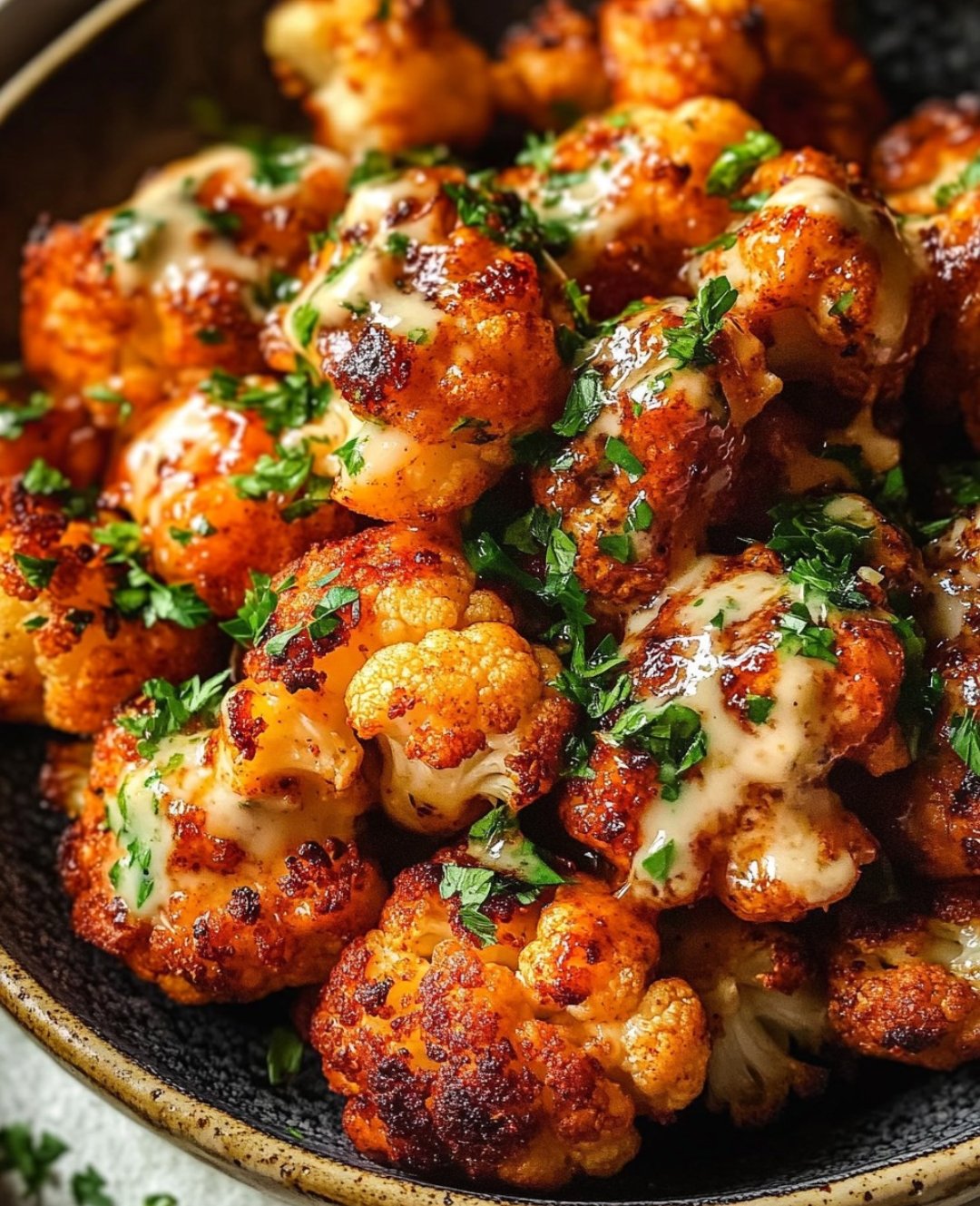 Golden roasted cauliflower tossed in warm, aromatic harissa spices, finished with a creamy tahini drizzle sweetened with honey and brightened with lemon. Savory, nutty, slightly sweet—no heat overload unless you want it.