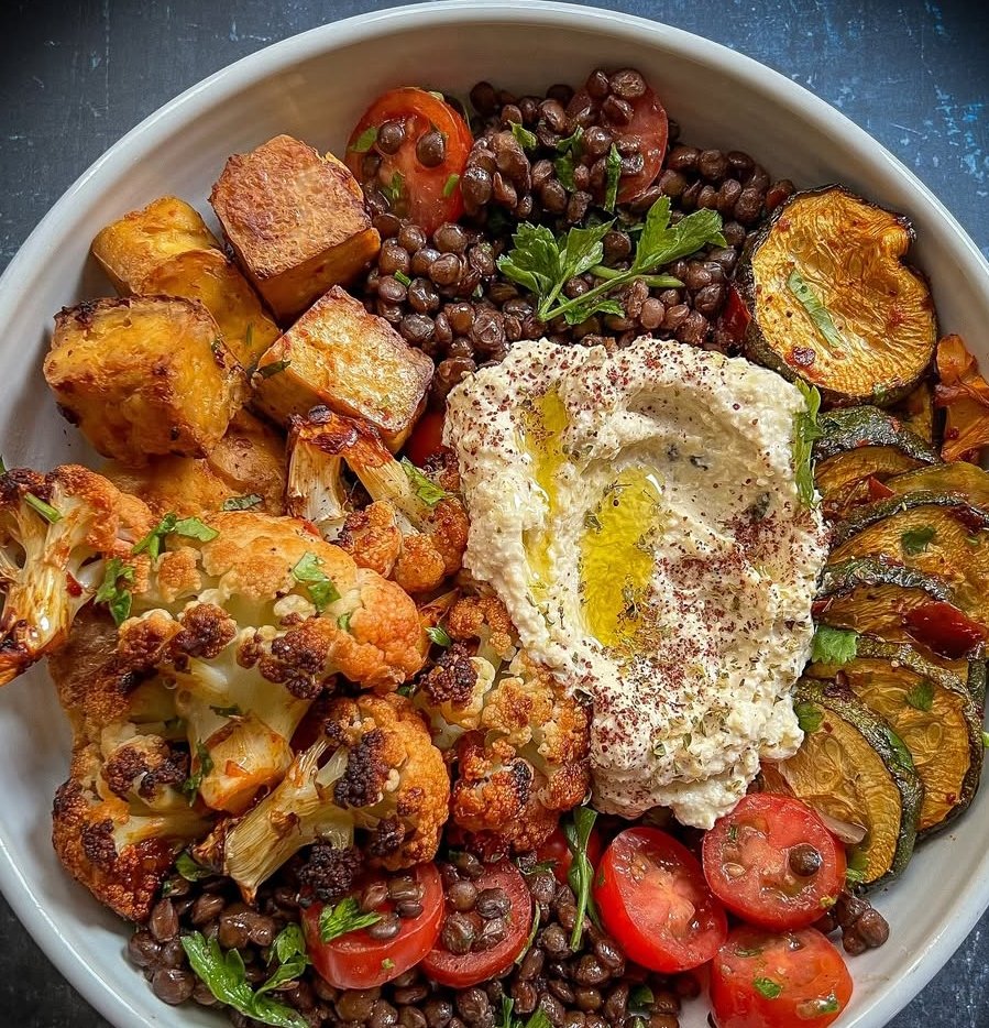 Harissa Roasted Veggies & Lentil Bowl