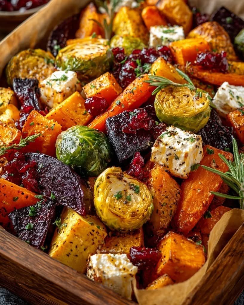 Harvest Roasted Veggies with Whipped Feta & Cranberry Glaze