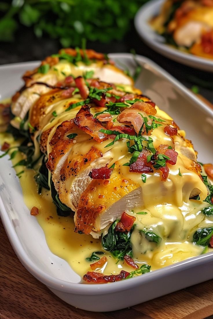 Tender chicken breasts are sliced Hasselback-style, stuffed with sautéed spinach and creamy cheese, then baked to golden perfection. This dish is simple to prepare, visually impressive, and full of Mediterranean flavors.