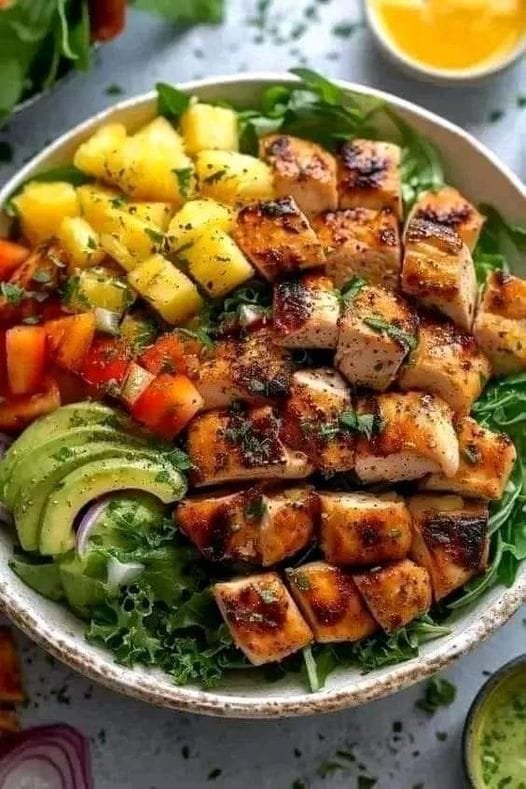 “Escape to the islands with every bite of our Hawaiian Chicken Salad! This tropical twist on a classic chicken salad combines juicy pineapple, sweet red grapes, crunchy macadamia nuts, and tender chicken, all tied together with a zesty soy-ginger dressing. Perfect for a light and refreshing lunch, dinner, or snack, this flavorful salad captures the essence of Hawaiian cuisine. With its delightful balance of sweet, savory, and tangy flavors, this dish will transport your taste buds to a tropical paradise. So, grab a fork and get ready to indulge in a taste of aloha!”