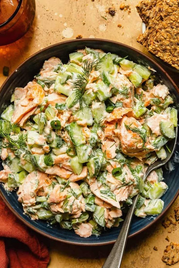 This simple yet elegant salad combines flaky cooked salmon, crisp veggies, fresh herbs, and a tangy lemon-dill dressing. It’s refreshing, light on calories, and high in protein and Omega-3 s — ideal for a quick, wholesome meal.