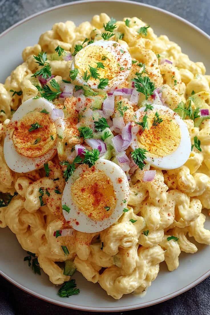Healthy Creamy Deviled Egg Macaroni Salad