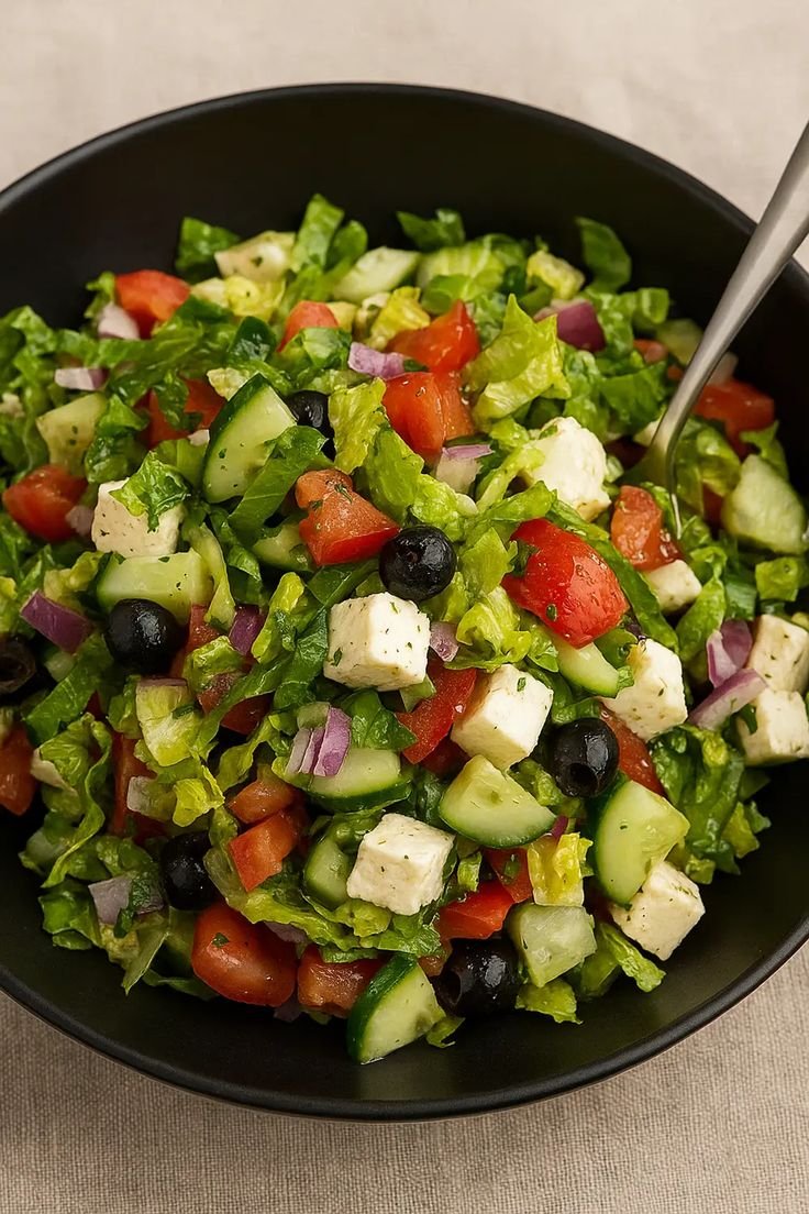A true Mediterranean staple made with juicy tomatoes, crunchy cucumber, olives, and feta, finished with olive oil and lemon. No lettuce needed—just clean, vibrant flavors that work as a side or a light meal.