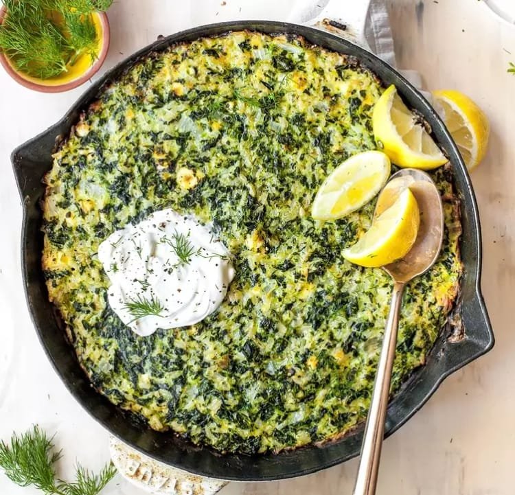 This one-pan recipe is the casserole version of spanakopita! It’s hearty enough to enjoy as a vegetarian lunch or dinner, yet versatile enough to serve alongside just about any protein. To make it extra creamy, top each serving with a dollop of sour cream.