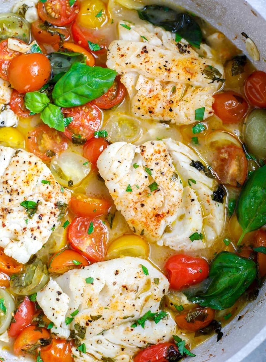 Simple and delicious flavors. The meaty heft of cod and it’s mild flavor (not too ‘fishy’), means all those fresh herbs and seasonings really come to the foreground – simply delicious.
