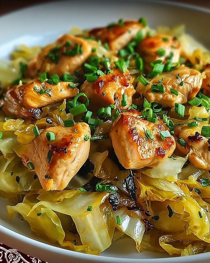 This light yet satisfying dish features tender strips of chicken breast and soft, sweet cabbage sautéed with fragrant garlic. It’s quick to make, low in carbs, and packed with protein and fiber. The result is a flavorful, wholesome meal that can be enjoyed on its own or served with rice, quinoa, or whole grain bread.