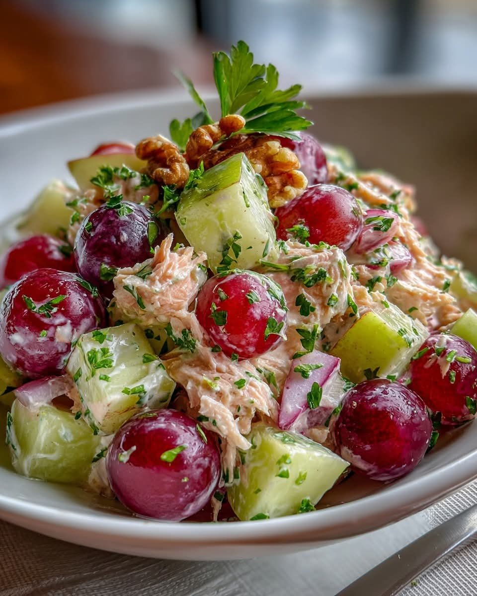 A Healthy Tuna Waldorf Salad is a lighter, protein-packed twist on the classic Waldorf salad — traditionally created at the Waldorf Astoria New York. This version replaces heavy mayonnaise with Greek yogurt while combining tender tuna, crisp apples, celery, grapes, and crunchy walnuts for a refreshing, creamy, and nutritious meal. It’s perfect for lunch, meal prep, sandwiches, or a light dinner.