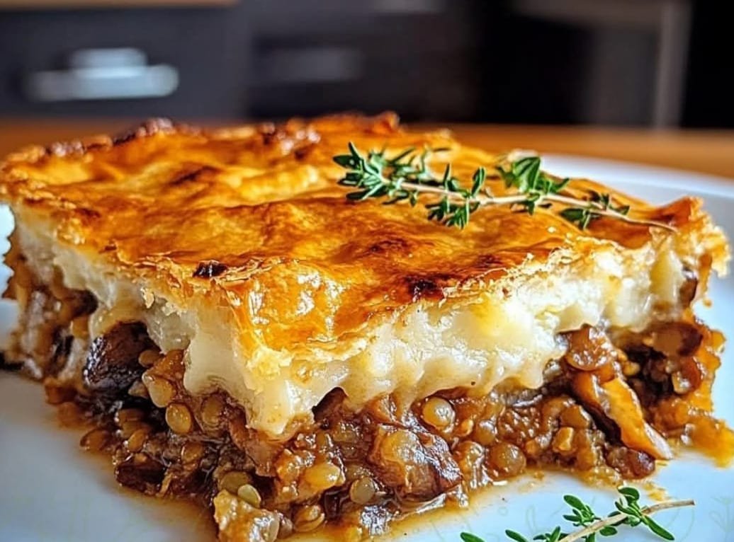 This hearty lentil and mushroom pie is a delicious, satisfying dish perfect for vegetarians and meat-lovers alike. Packed with protein-rich lentils, earthy mushrooms, and a flaky, golden crust, this pie makes a fantastic comfort meal for any occasion.