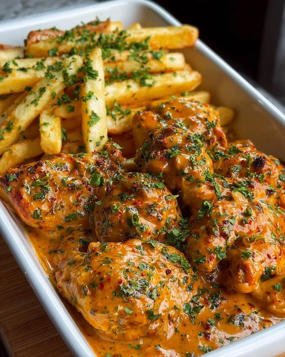 Heavenly Creamy Garlic Paprika Chicken with Crispy Fries