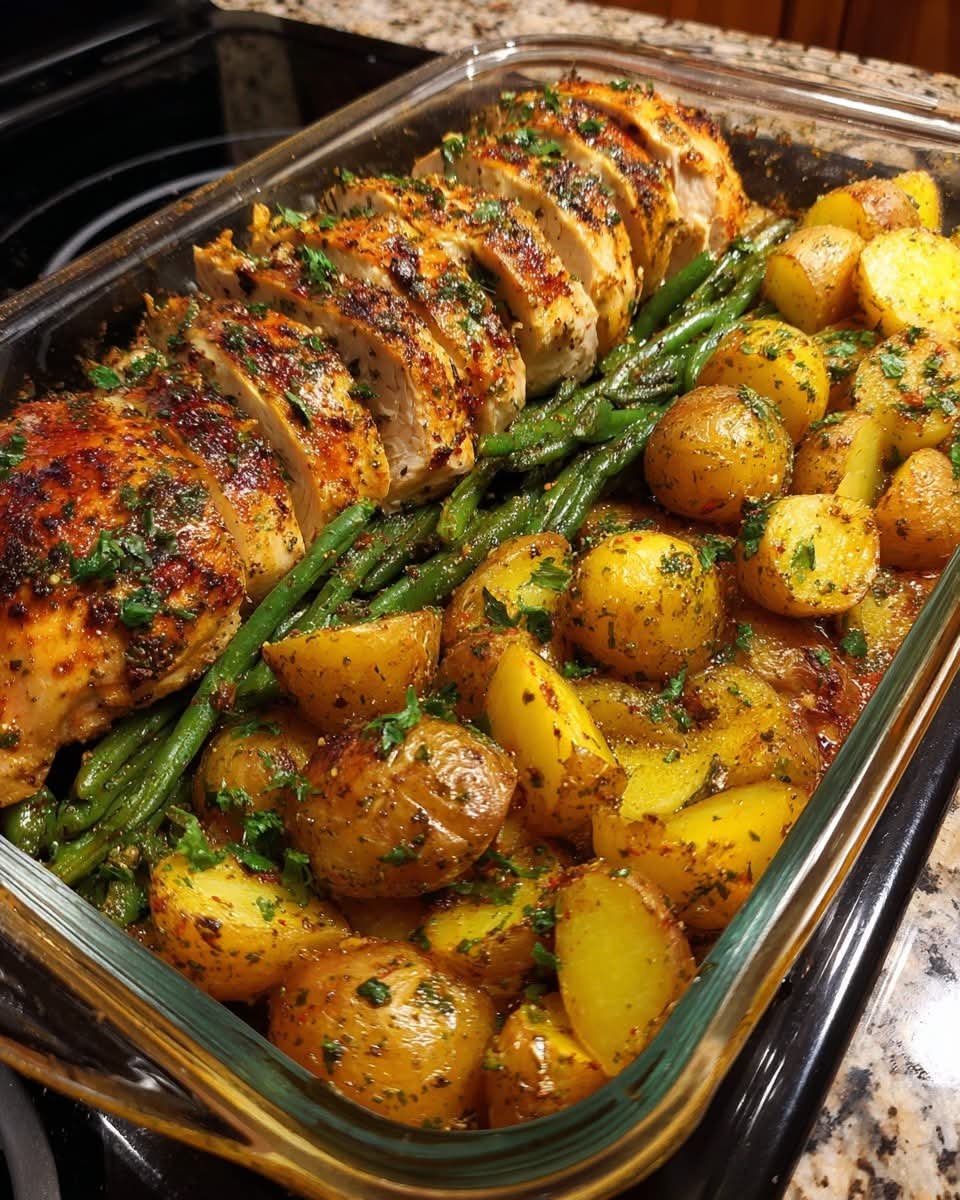 Heavenly One-Pan Garlic Herb Chicken with Roasted Baby Potatoes & Green Beans