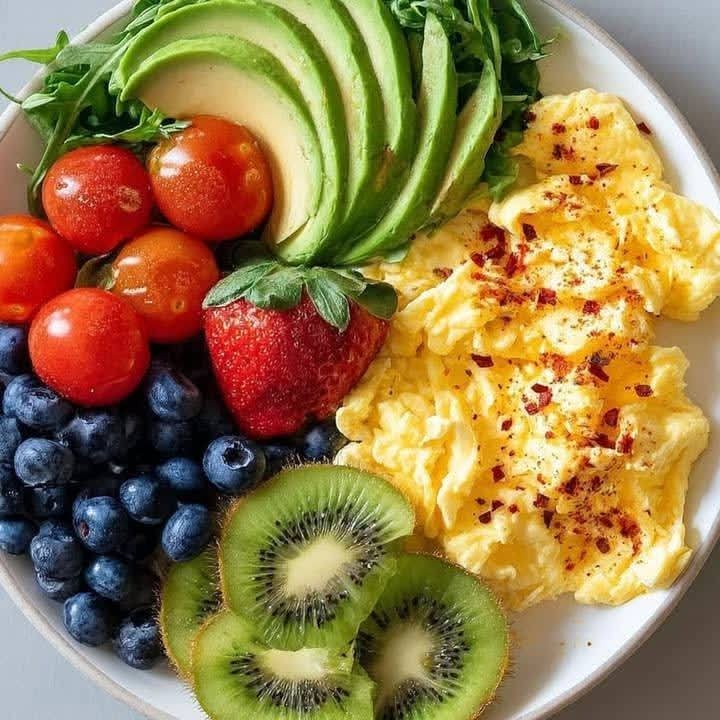 This breakfast bowl is a powerhouse of protein, fiber, and micronutrients. It combines plant-based and animal-based proteins (or just plant proteins if you prefer), colorful fruits, and nutrient-rich veggies to fuel your morning. It’s perfect for weight management, muscle building, or simply starting your day with balanced energy.