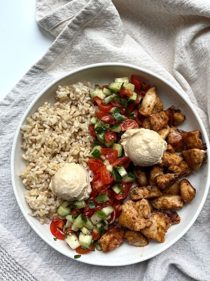High-Protein Chicken, Rice, Veggies & Hummus Bowl