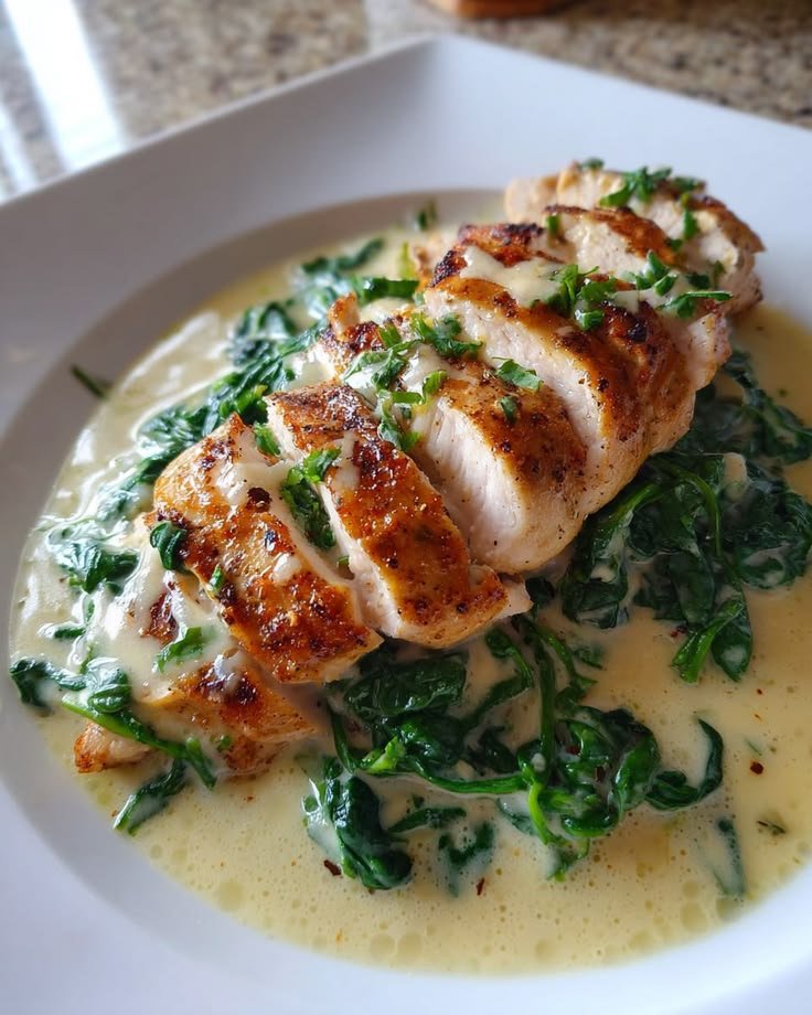 This High-Protein Chicken with Spinach is a quick, nutritious meal packed with lean protein and iron-rich greens. Juicy pan-seared chicken breast is paired with garlic sauteed spinach for a simple dish that’s perfect for healthy dinners, meal prep, or low-carb diets.