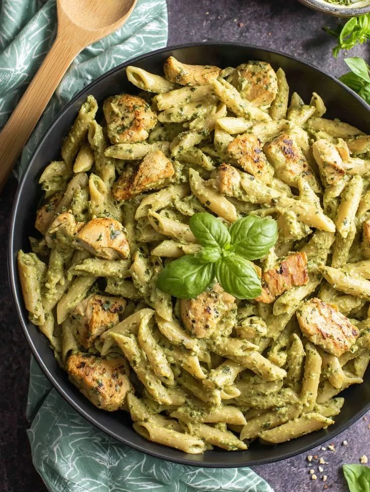 This high-protein creamy chicken pesto pasta is a healthier twist on a comfort classic. Made with lean chicken breast, protein-rich pasta, and a light creamy pesto sauce, it’s satisfying without being heavy. Perfect for quick dinners, meal prep, and anyone looking for a Mediterranean-style, non-spicy meal.