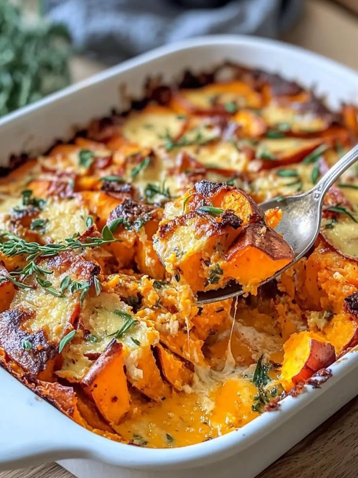 A Garlic Sweet Potato Bake is a warm, comforting dish made with roasted sweet potatoes layered with garlic, herbs, and a creamy high-protein mixture. This healthy version uses Greek yogurt and cottage cheese instead of heavy cream, making it high in protein, lower in fat, and very nutritious.