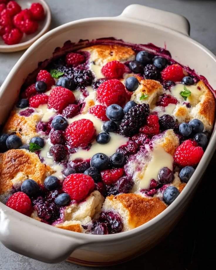 This high-protein bake combines juicy strawberries, blueberries, and raspberries with Greek yogurt and eggs for a creamy, custard-like texture. Naturally wholesome, non-spicy, and great for meal prep.