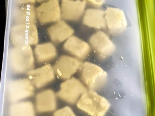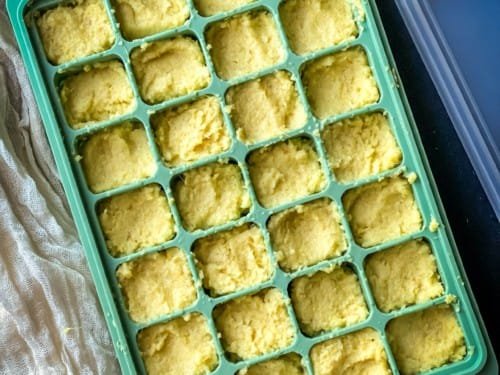 After it has frozen, remove the cubes and place them in a silicone bag or Ziploc and keep them there for up to six months.