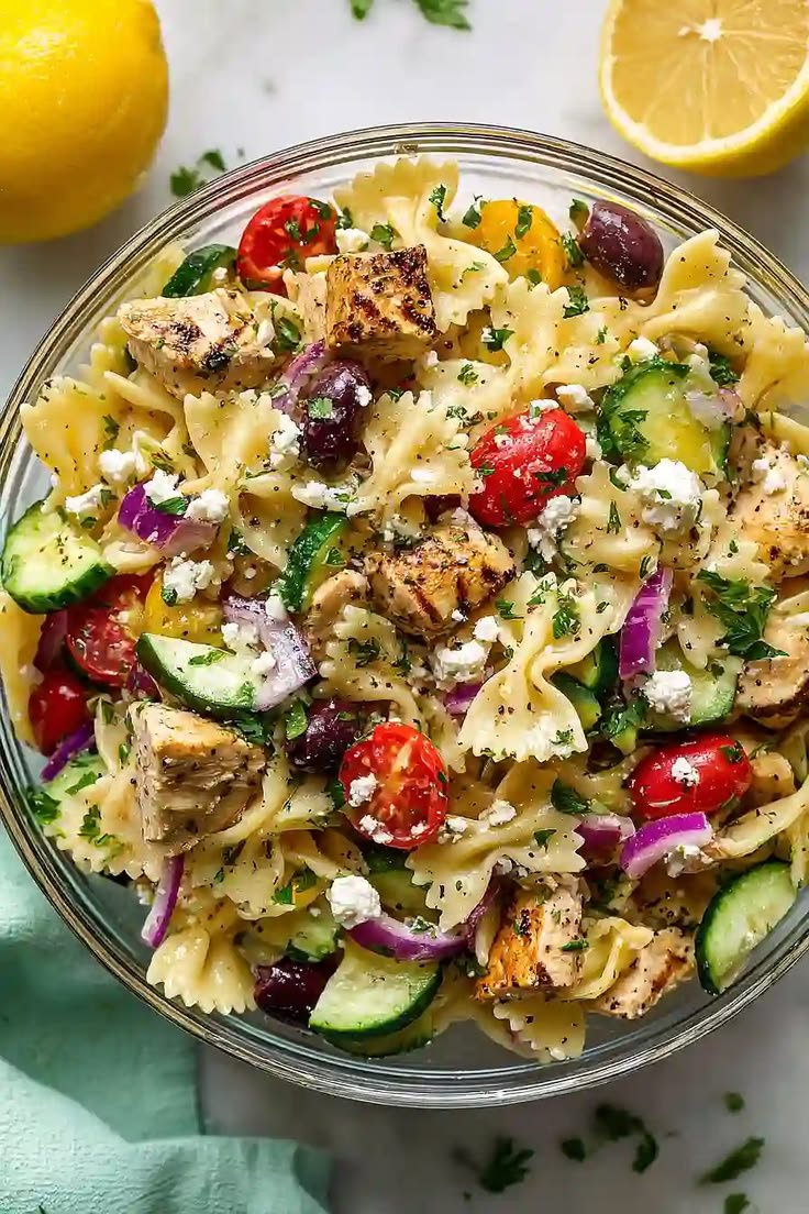 The Homemade Greek Pasta, Chicken & Veggies Salad is a fresh, protein-packed, and flavorful meal perfect for lunch, dinner, or meal prep. It combines tender chicken, al dente pasta, crisp veggies, olives, and feta with a zesty Greek dressing for a Mediterranean-inspired dish that’s satisfying and healthy.