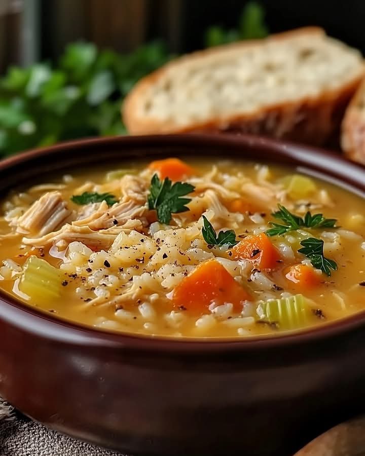 This comforting, homestyle chicken and rice soup is the perfect meal for a cozy night or a nourishing pick-me-up when you’re feeling under the weather. Loaded with tender chicken, hearty vegetables, and soft rice in a savory, lightly herbed broth, it’s wholesome, filling, and simple to prepare.