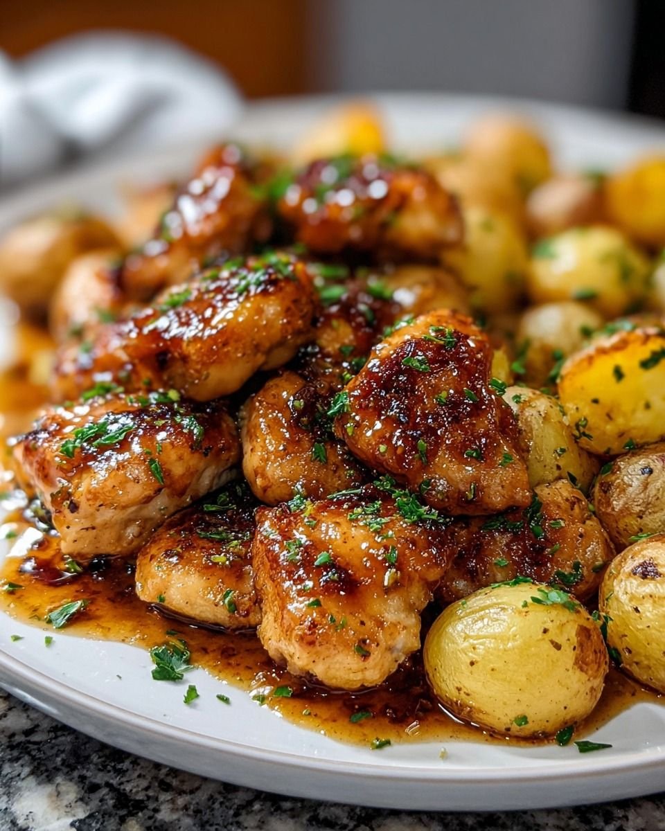 This Honey Garlic Chicken Bites with Roasted Baby Potatoes is a comforting, flavor-packed meal combining crispy golden potatoes with juicy chicken coated in a sticky sweet-savory honey garlic glaze. It’s perfect for weeknight dinners, meal prep, or even a cozy family gathering. The balance of caramelized garlic, honey sweetness, and roasted herbs makes it irresistible.