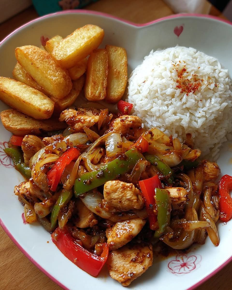 Honey Pepper Chicken with Rice & Golden Potato Wedges