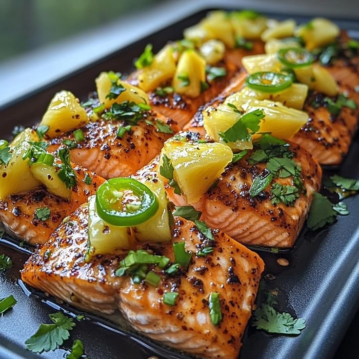 This recipe features flaky salmon fillets glazed with a sticky honey-pineapple sauce and a hint of jalapeno heat. It’s a perfect balance of sweet, savory, and zesty — refreshing yet rich, with a golden caramelized crust. Serve it with rice, quinoa, or roasted veggies for a complete, colorful meal.