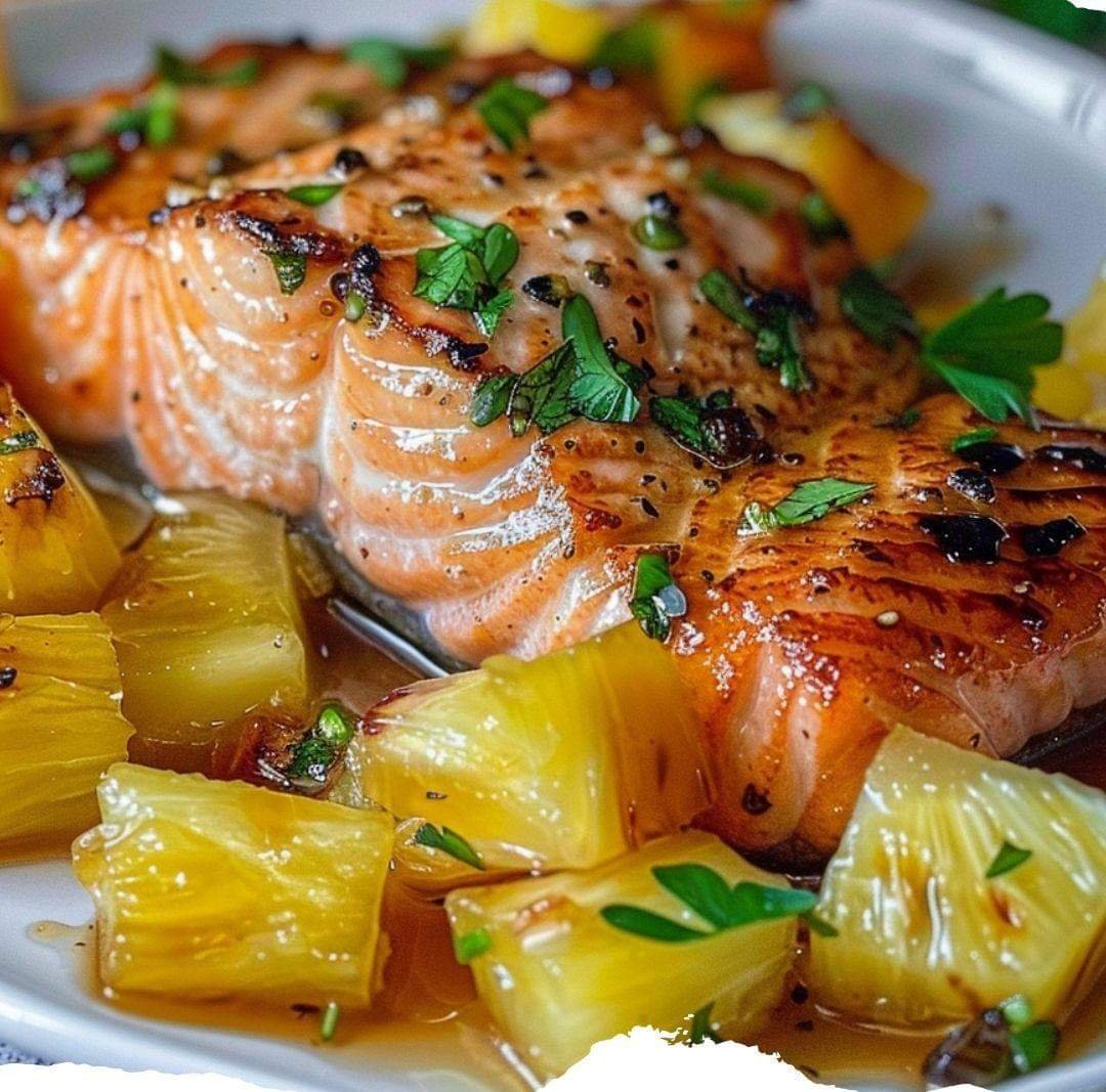 A delightful fusion of sweet and savory flavors. The succulent salmon is glazed with a mixture of honey and pineapple, creating a dish that’s both delicious and refreshing.”