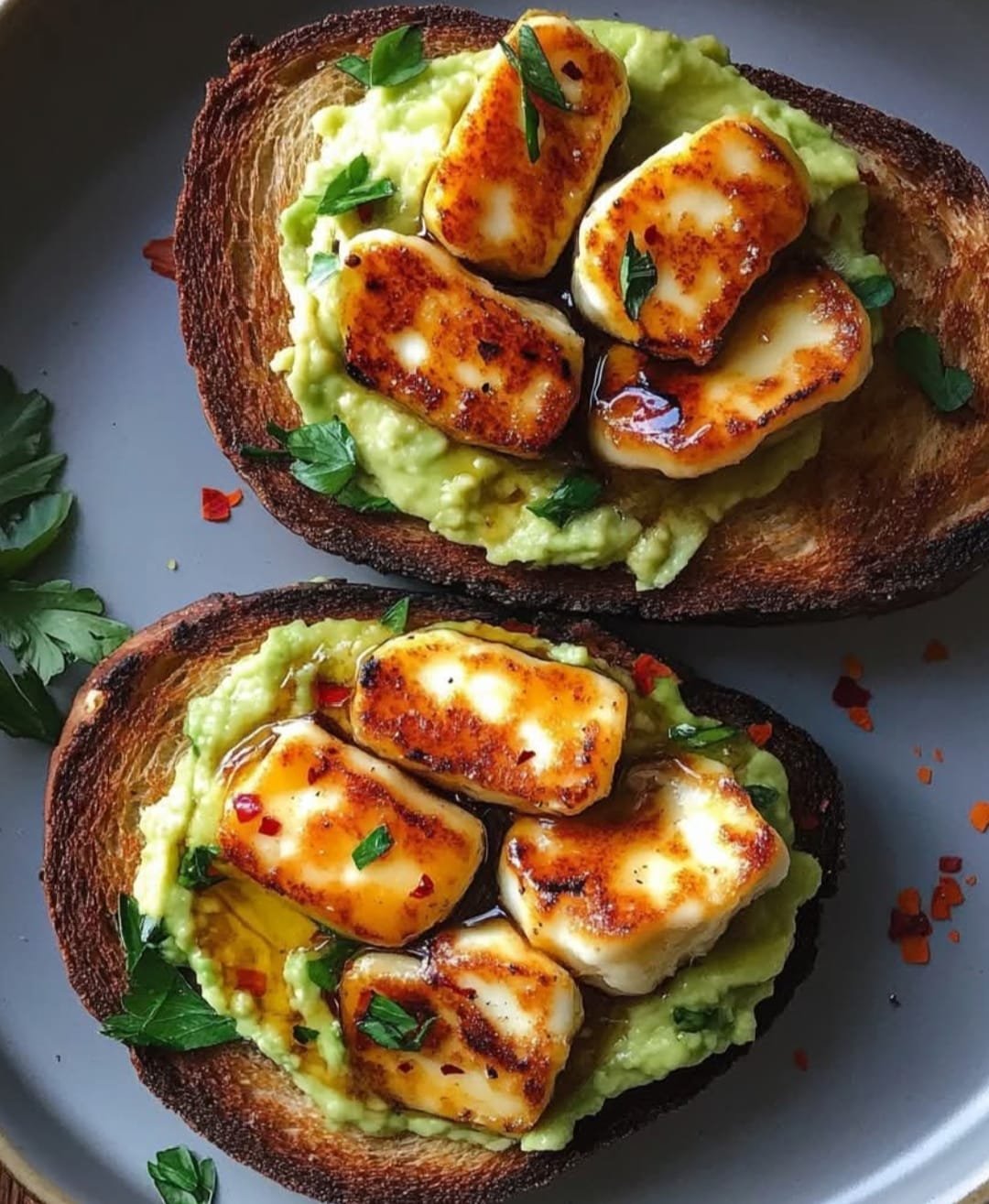 Hot Honey Avocado & Halloumi Toast on Sourdough