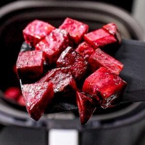 Beets roasted in an air fryer with just olive oil, salt, pepper, and garlic powder make for delightfully fork-tender fries. Use this recipe as a warm, easy, and nutritious side dish for beets, or as a topping for beet salad (served chilled). Come on, let’s air fry!