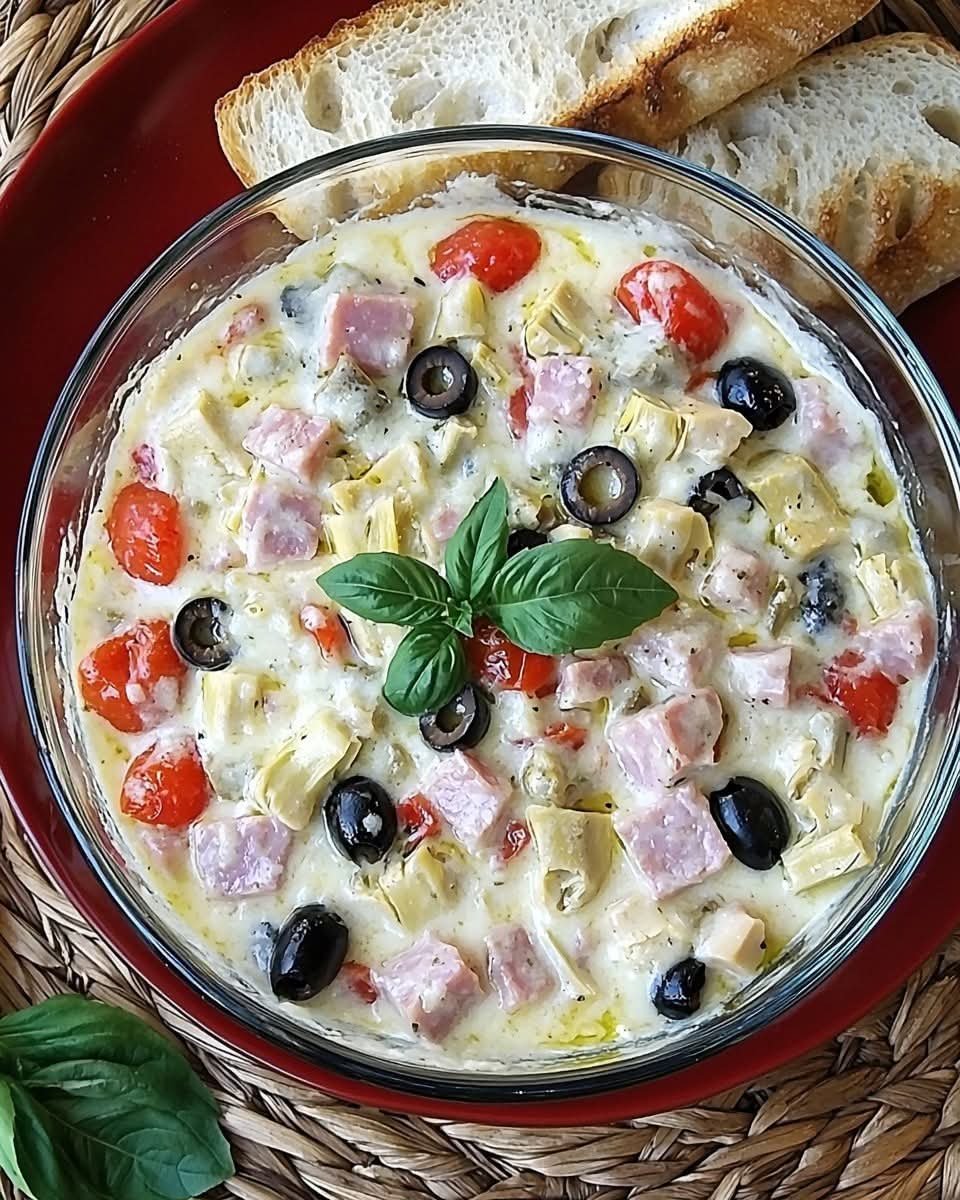 This Mediterranean pizza dip is warm, creamy, and loaded with cheesy goodness, herbs, and Mediterranean toppings like olives, sun-dried tomatoes, and artichokes. Made quickly in the Instant Pot, it’s perfect served with warm pita, chips, or veggies.