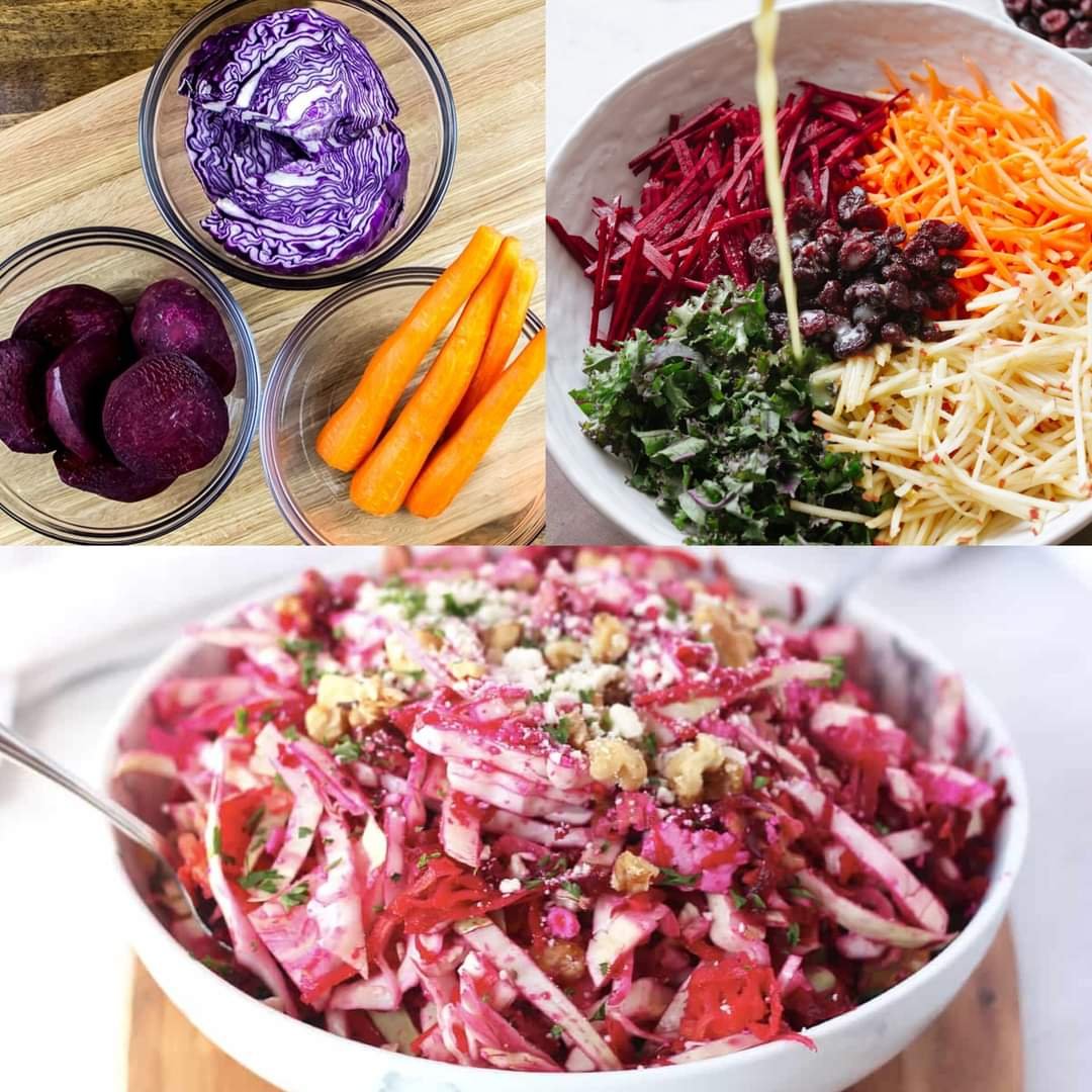 This beetroot, carrot, and cabbage salad is not only delicious but also packed with health benefits:
