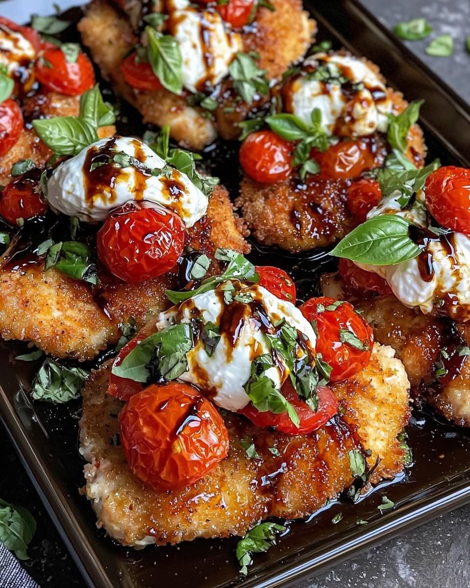 Italian Basil Chicken Cutlets with Tomatoes & Burrata