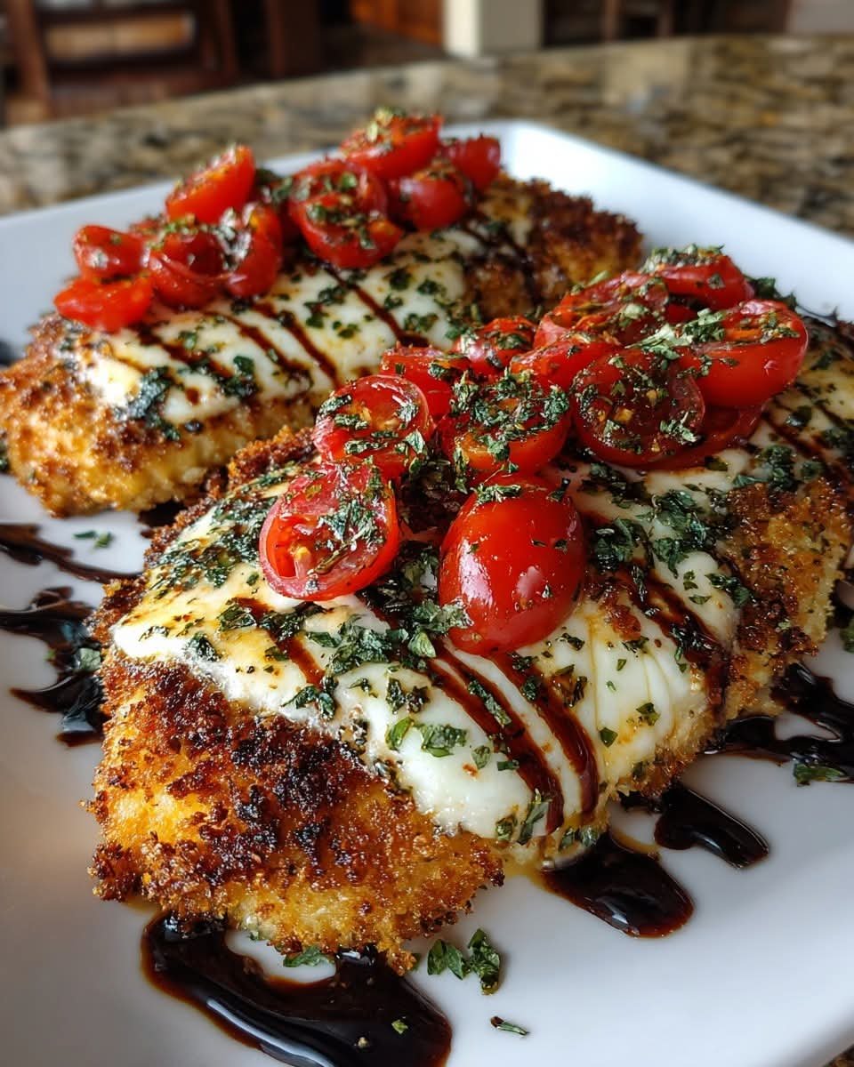 Tender, juicy chicken cutlets are pan-seared to golden perfection and topped with fresh tomato slices, creamy mozzarella, and fragrant basil. Finished in the oven until the cheese melts and bubbles, this dish is a simple yet elegant Italian-inspired dinner that pairs beautifully with pasta, salad, or garlic bread.