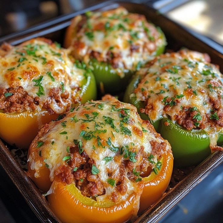 Sweet bell peppers are roasted and filled with a rich, savory beef and tomato Bolognese sauce, then topped with Parmesan and herbs. It’s a comforting Mediterranean-style meal with all the soul of Italy — perfect for family dinners, meal prep, or date night.