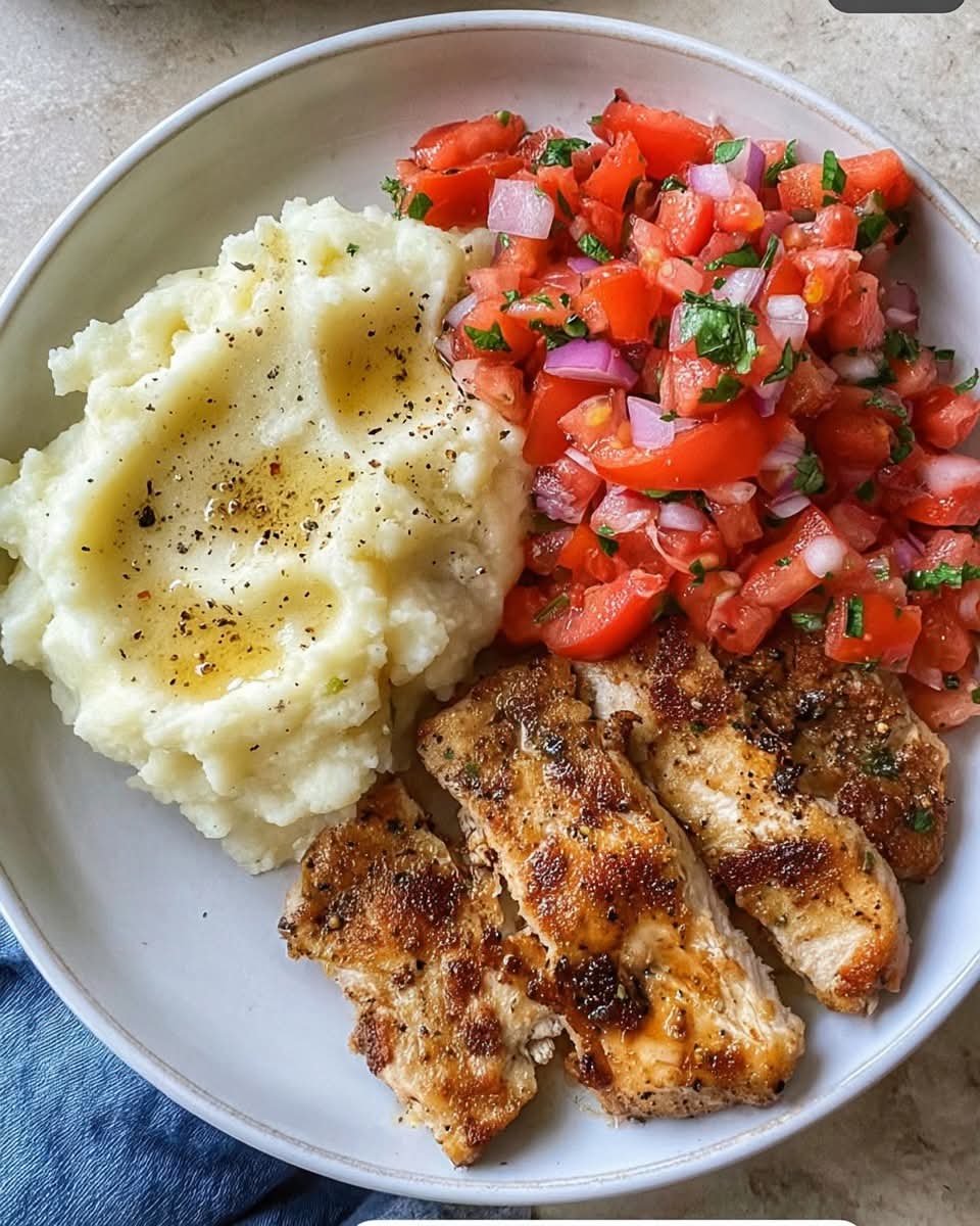 Juicy Chicken with Creamy Mashed Potatoes and Tomato Salsa: Comfort Food Delight
