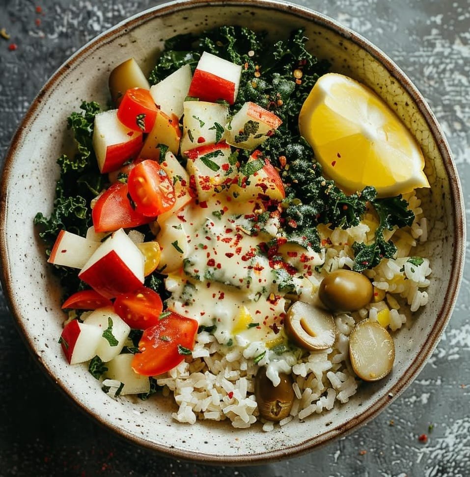 This Kale and Rice Salad with Mayo Dressing is a hearty, nutrient-packed salad that combines tender kale, fluffy rice, and a creamy, tangy dressing. It’s a perfect balance of textures and flavors, making it a great side dish or a satisfying meal on its own. The combination of fiber-rich kale and whole grains makes this dish both wholesome and delicious.