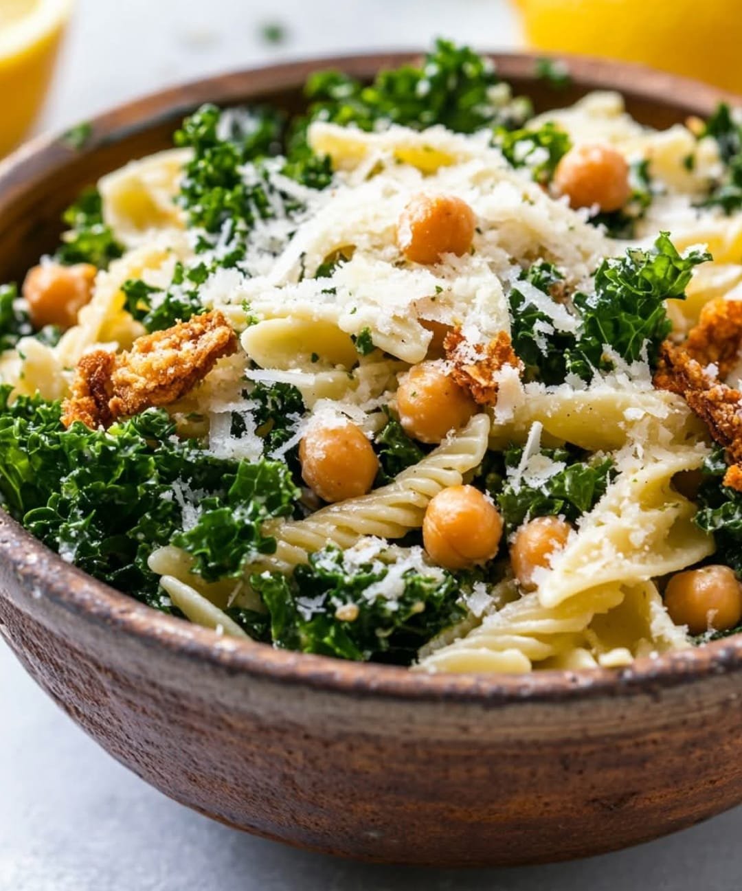 This Kale Pasta Caesar Salad combines hearty pasta, crisp kale, and classic Caesar flavors into a delicious, nutrient-packed dish. It’s perfect as a satisfying main course or a flavorful side. The creamy homemade Caesar dressing ties everything together, while crunchy croutons and Parmesan add texture and richness.
